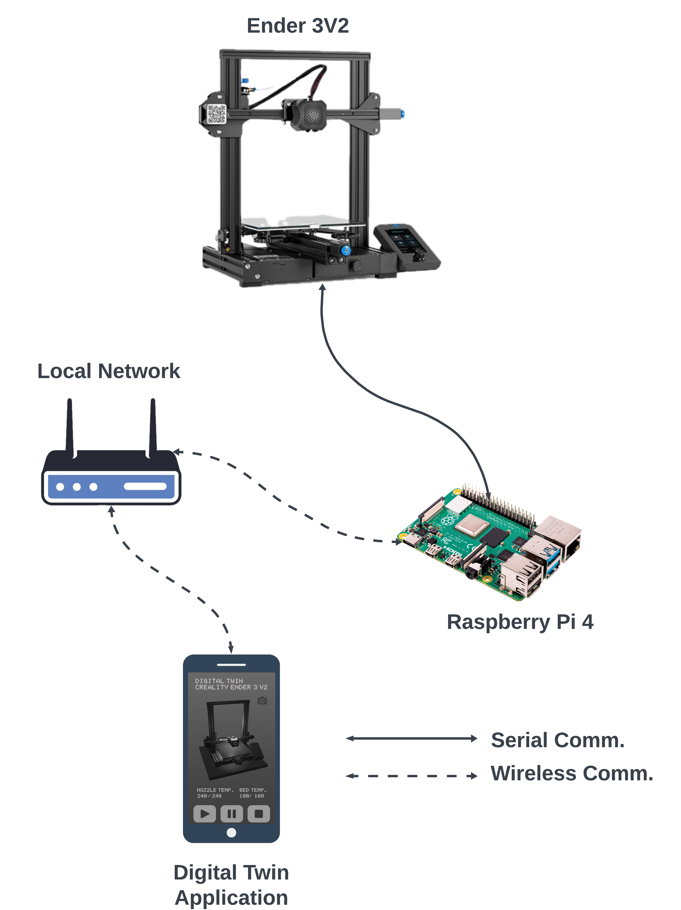 In the implementation phase, the Raspberry Pi 4B was configured, and a stable connection with the 3D printer was established. Following this, the Flask server and API endpoints for handling the data were developed. A custom C# script facilitated the integration with Unity, ensuring the virtual model was dynamically updated based on real-time data from the APIs.