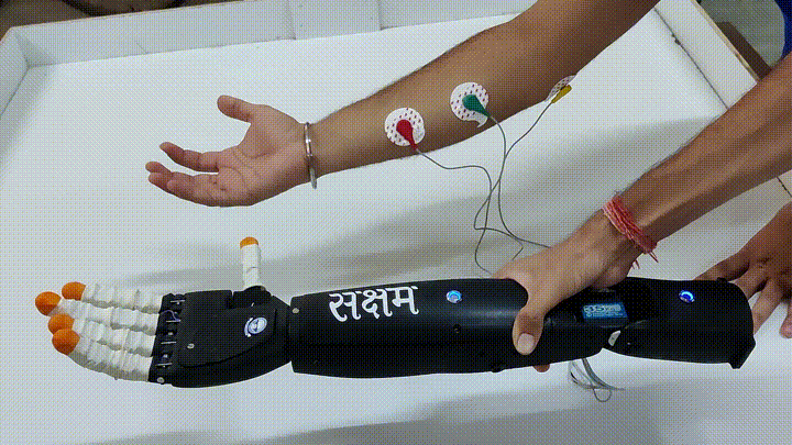 Integration of Arduino Nano RP2040 Connect, sEMG (Surface Electromyography) sensors, a 16-channel servo motor controller, high-torque servo motors, tactile sensors, and haptic motors. Strategic positioning of sEMG electrodes to detect muscle activity and transmit signals to the Arduino for processing. Computations, sensory data collection, and motor commands managed using Arduino Nano RP2040, selected for its inbuilt Wi-Fi and Bluetooth capabilities.